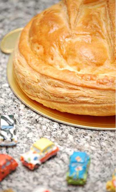 フランスでは1月6日のエピファニー(公現祭)を祝うためのお菓子がパティスリーの店頭に並びます。当日に限らず1月いっぱいはどの店でもショーケースを飾っています。文化の違いもありますが、毎年「MIYAKE」でもガレットデロアを作りますが、今回「シトロン2CV誕生60周年記念」ということで特別に作りました。折りパイとアーモンドクリームとマロンのシンプルなお菓子ですが、面白いイベント性があります。生地の中に陶器製の小さな人形やおもちゃ(フェーヴ)が入っていて、切り分けて「当り」があることです。当たった人は、その日1日は王様です。